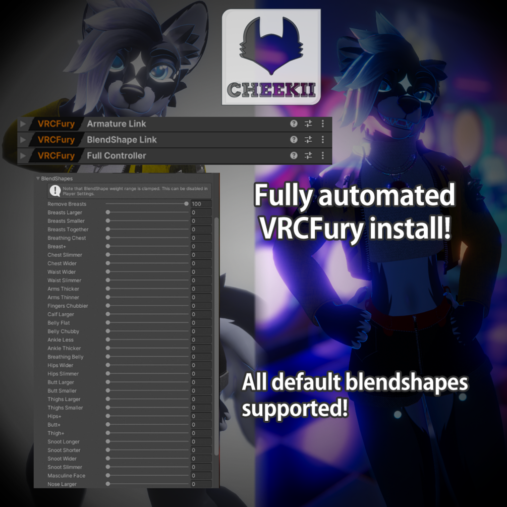 VRCFury will automatically install the clothes and set up the menus, no extra hassle necessary!